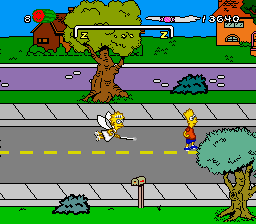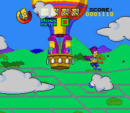 Bart's Nightmare is an action game based on the TV cartoon show The Simpsons. The player navigates Bart through the side-scrolling overworld, collecting pages of his homework while avoiding various enemies modeled after characters from the show. For example, his sister Lisa would occasionally turn him into a frog, Principal Skinner may force him to wear a Sunday school uniform (slowing his movement), etc. Bart can repel enemies by blowing a bubble gum at them.