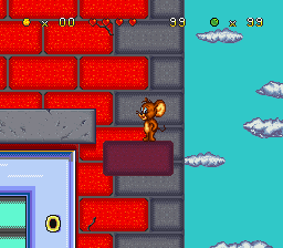 | __long_description | Based on MGM's world-known cartoon, the player controls Jerry, the Mouse (in 2-Player Mode, P2 will control Jerry's nephew, Tuffy) as he explores four different worlds (movie theater, junkyard, a toy-based stage and the house inner). Game controls are simple: B Button makes Jerry/Tuffy to jump (tapping it again lightly upon landing will activate their Super Jumps), while A/Y/X Buttons will make them to throw marbles upward (Y Button) and downward (X/Y Buttons) in the enemies.