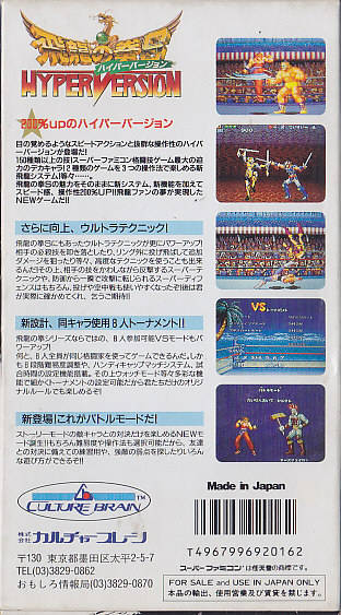 | description | A fighting game by Culture Brain, released for the SNES. Features characters from the earlier "Flying Warriors" for the NES. |