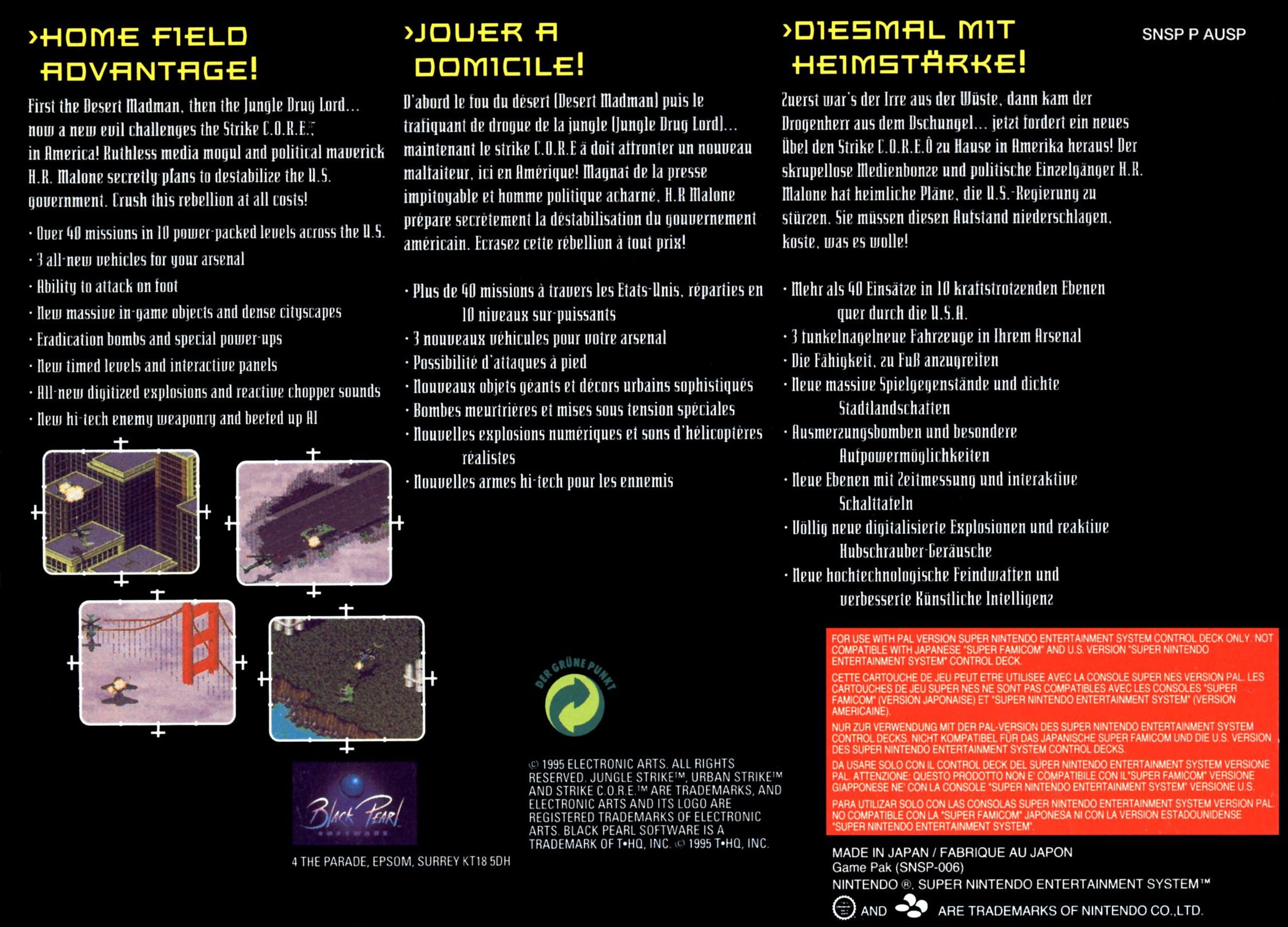 | __long_description | Urban Strike is the third in EA's long running series of helicopter action games. An evil genius named H. R. Malone has started a cult and managed to gather millions of followers. Malone is using his influence and wealth to build a super weapon with which he will overthrow the government. You will once again suit up and take control of various types of helicopters to stop Malone's evil scheme.