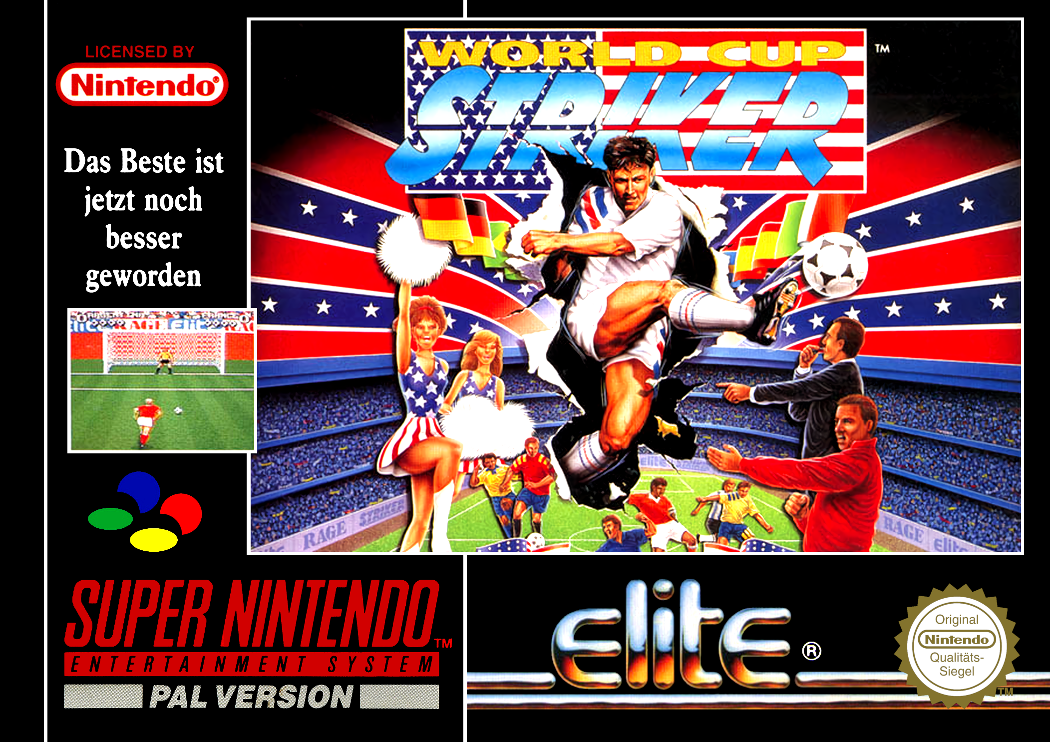 | __long_description | Elite Soccer/World Cup Striker is a soccer game developed by Rage Software in 1994. It is essentially a repackaged version of Striker, with new features and few improvements as well as heavily featuring the 1994 World Cup. For its World Cup mode, it includes the 24 qualifying teams and an additional eight teams that failed to qualify (such as Denmark, England, Japan and France) that the player can mix and match into groups of their choice. They can also decide which teams will be player or computer controlled (if two computer teams compete the game will simply generate a result).