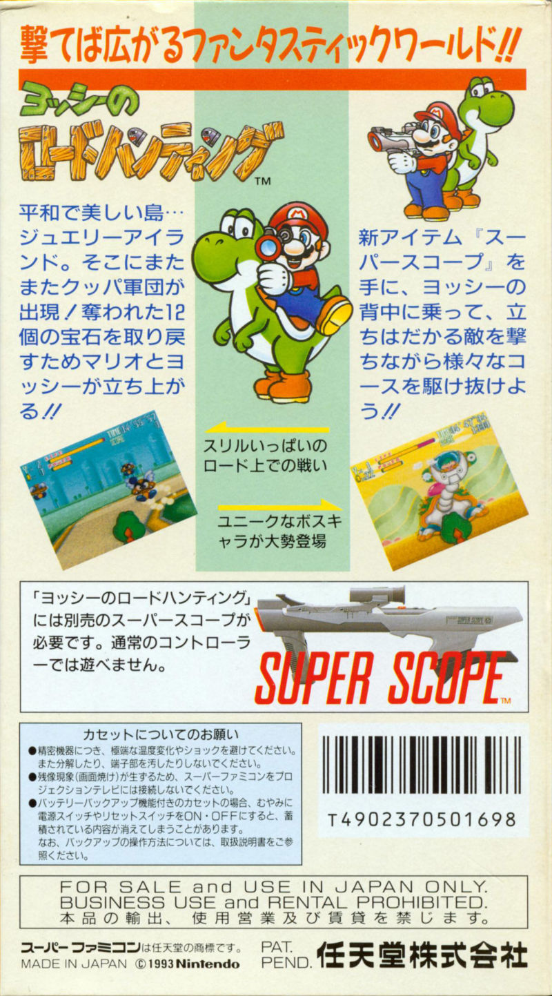 The game could be played by one player with the Super Scope, or by two players, with the second controlling Yoshi's movement with a controller. |