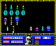 The game consists of five stages based on events from the movie. Each stage has a time limit and a health gauge (represented by Batman's face turning into the Joker's), with Batman losing a life if he runs out of either. The first stage sees players controlling Batman as he navigates the Axis Chemical Plant to confront Jack Napier, leading to the incident in which he becomes The Joker. In this level, the game features side-scrolling gameplay, in which Batman can use his Batarangs to defeat enemies or and his grapple gun to reach higher platforms and swing across gaps. In the second level, Batman rides in his Batmobile where he must dodge traffic and use a grapple to swing around corners to avoid running into the police. The third level is a puzzle section in which Batman must identify various components for Smilex, the deadly chemical Joker has put into the market. The fourth level takes place during Joker's parade, in which Batman must use the Batwing to cut away balloons filled with poisonous gas without hitting the balloons themselves. Finally, the fifth level, which reprises the gameplay of the first level, sees Batman make his way to the top of Gotham Cathedral to finally confront Joker.